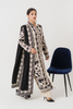 Bringing life to this alluring white canvas with artistic embroidery in black, regaling the tales of glory, paired with a classic black shawl adorned with a heavy embroidery border and Bamber raw silk trousers completing this spellbinding look for all your timeless black and white wishes.