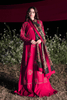 A vibrant magenta shirt, adorned with intricate pink floral embroidery and soft green accents, paired with matching trousers, while the silk dupatta shines with delicate motifs and along its edges — an ensemble full of rich details and refined charm.